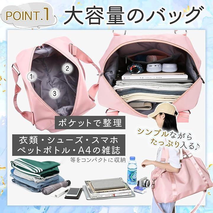 「旅行やジムに最適な韓国風のボストンバッグ」大容量でありながら軽量設計、防水素材使用で急な天候変化にも対応。