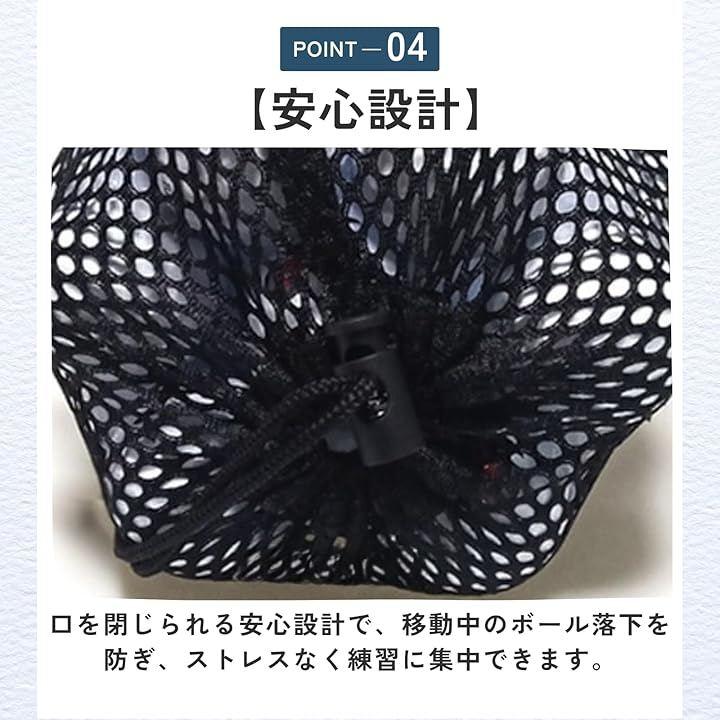 「安心設計」口を閉じられる安心設計で、移動中のボール落下を防ぎ、ストレスなく練習に集中できます。