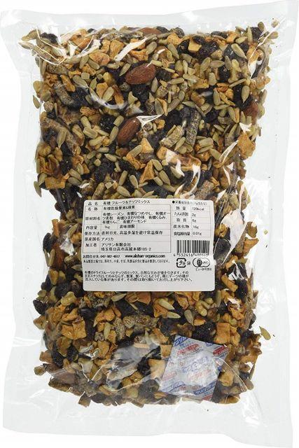 アリサン有機ナッツ&フルーツミックス1kgは、米国産の海外認定ドライフルーツ&ナッツをミックス。