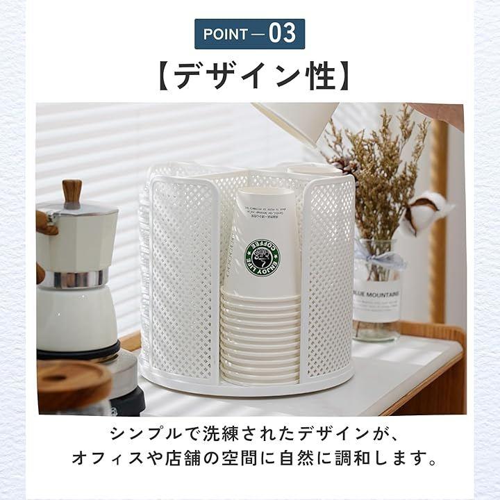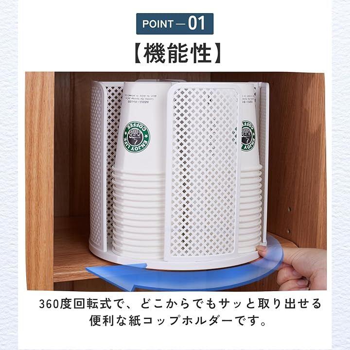 「機能性」360度回転式で、どこからでもサッと取り出せる便利な紙コップホルダーです。