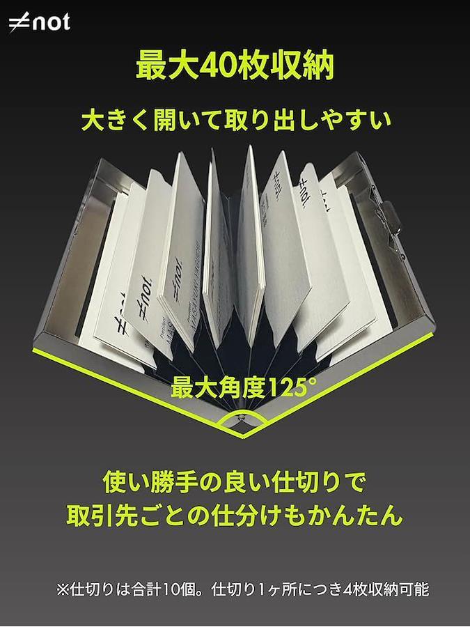 「大容量。最大40枚収納可能」金属製名刺入れにありがちな名刺を少ししか入れられない問題を解決。