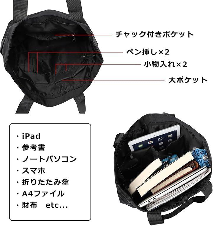 v「大容量のトートバッグ」A4サイズの書類やファイルが縦向きでも横向きでも収納できる大容量サイズ。
