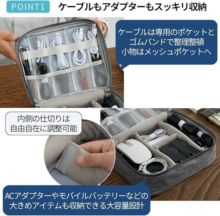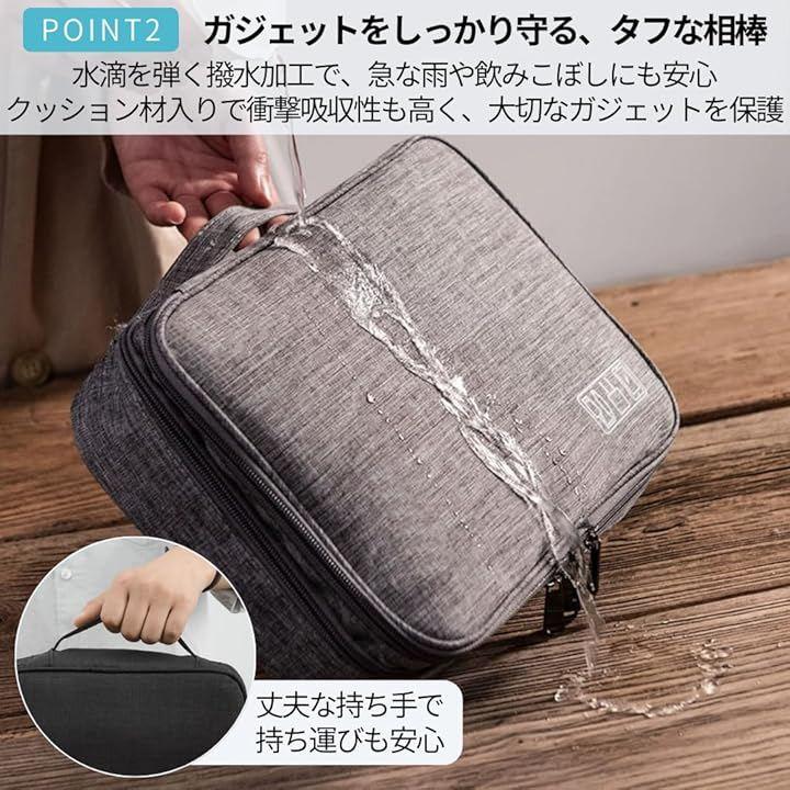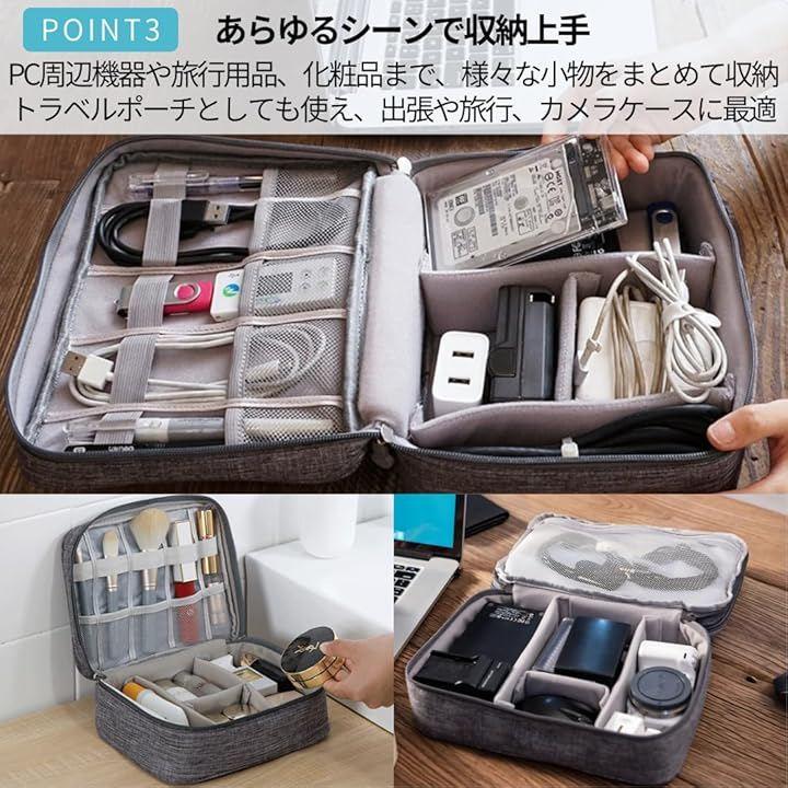 「もう散らからない。探し物ゼロへ。」PC周辺機器、ケーブル、充電器、マウス…全部まとめて収納。大容量ガジェットケースで仕分けも楽々。