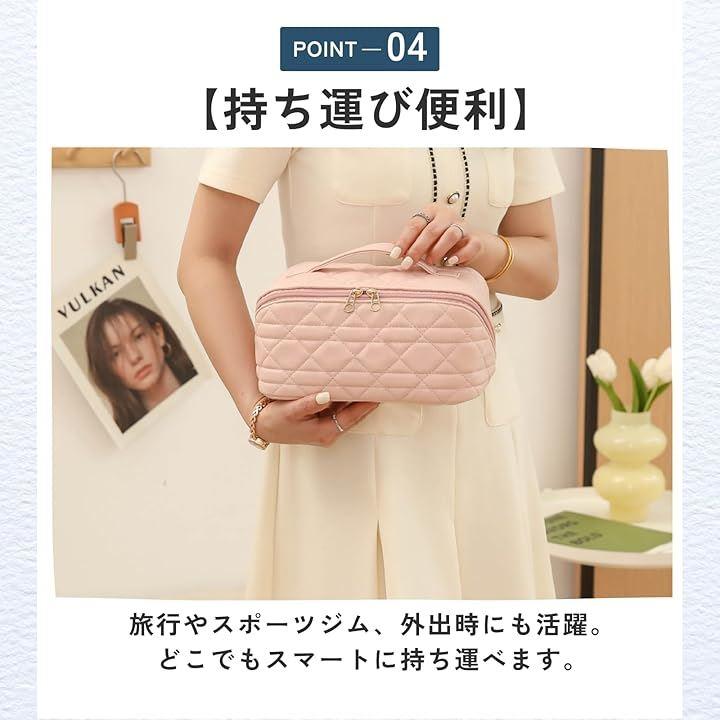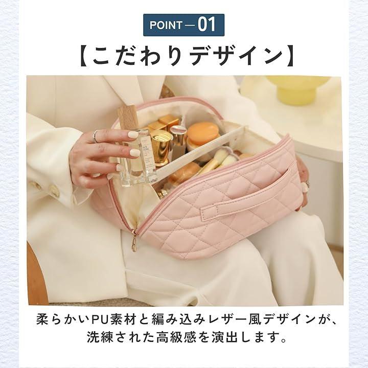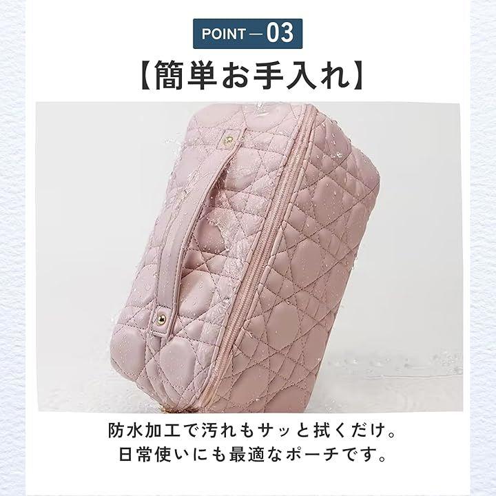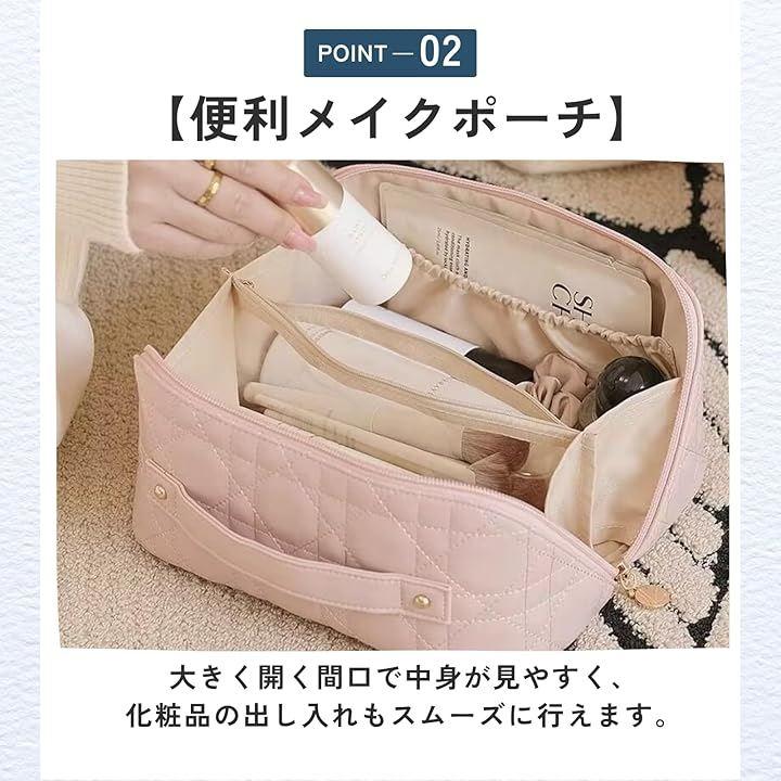 「便利メイクポーチ」大きく開く間口で中身が見やすく、化粧品の出し入れもスムーズに行えます。