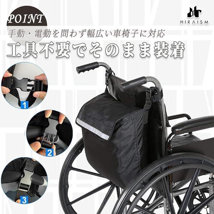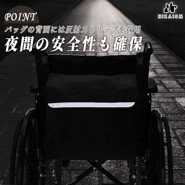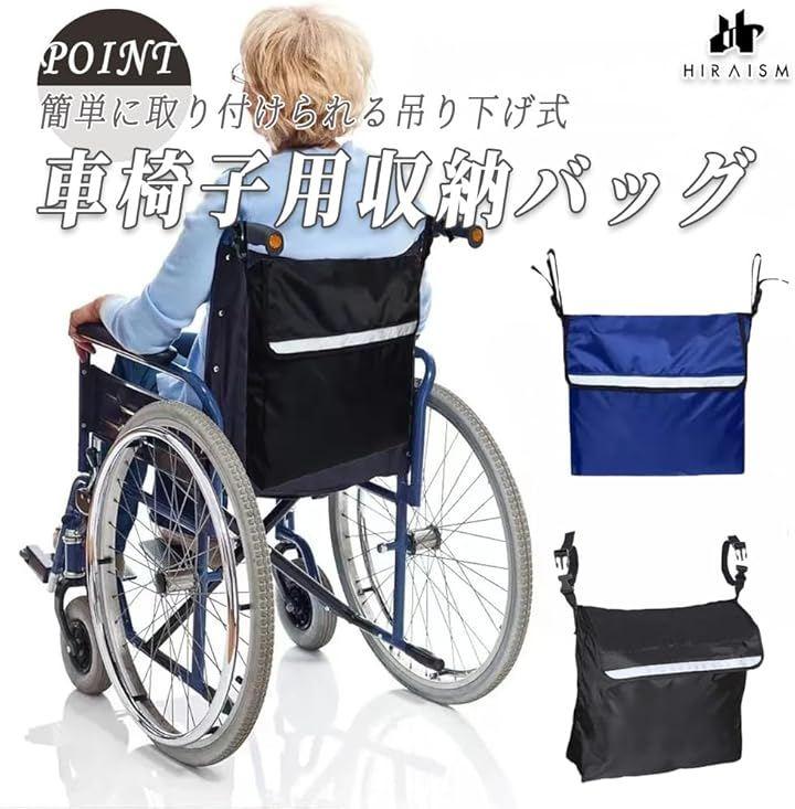 「商品内容」車椅子用収納バッグ <サイズ>縦約42cm x 横約38cm x マチ約10cm <カラー>ブラック or ブルー <素材>高密度ポリエステル防水・耐久性あり) <重量>約320g