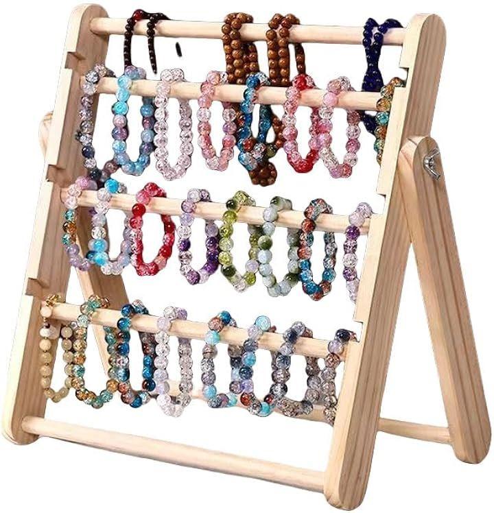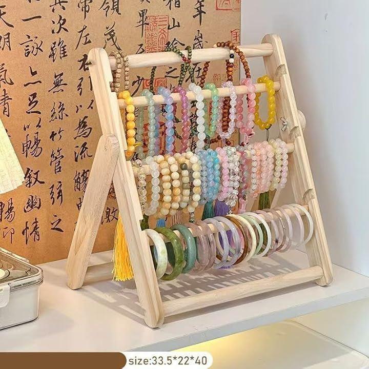 「大容量収納」この無垢材の多層ブレスレット収納ラックは、ネックレスや足首チェーンを含む多くのアクセサリーを一度に整理できます。