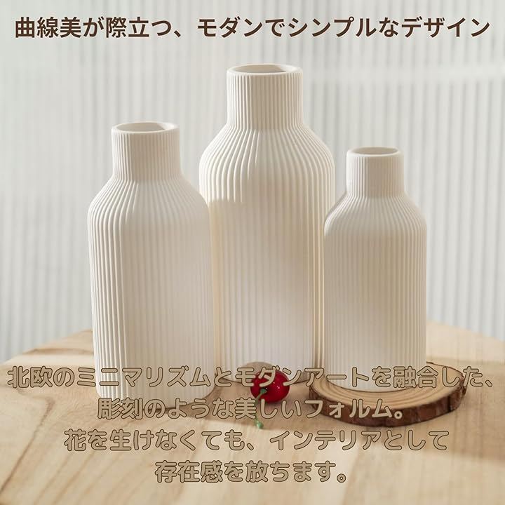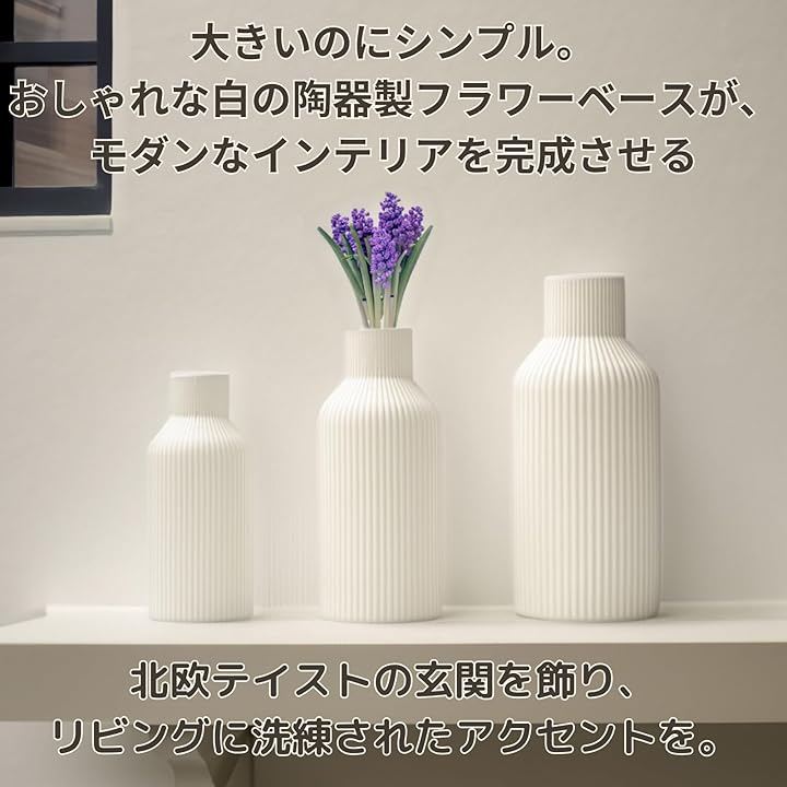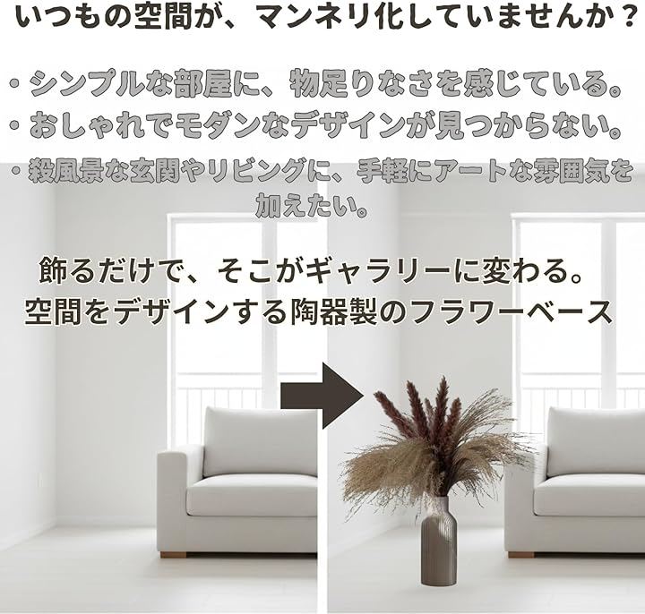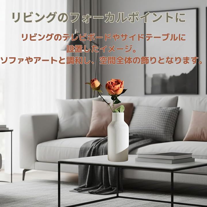 陶器の質感が花の美しさを際立たせ、シンプルながらも豊かなインテリアを創造します。