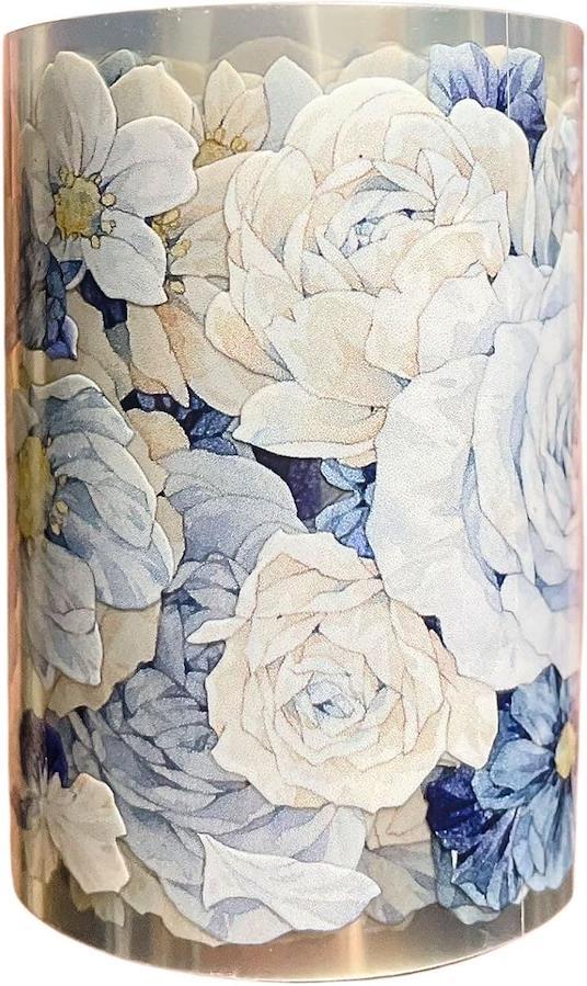 「華やかな大輪の花柄」大輪のブルーのバラとピンクの牡丹を繊細に描いたマスキングテープ。