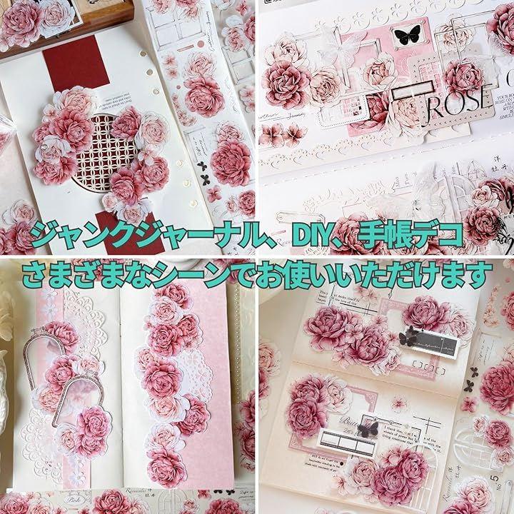 華やかで繊細な大輪の薔薇と牡丹の花柄マスキングテープです。