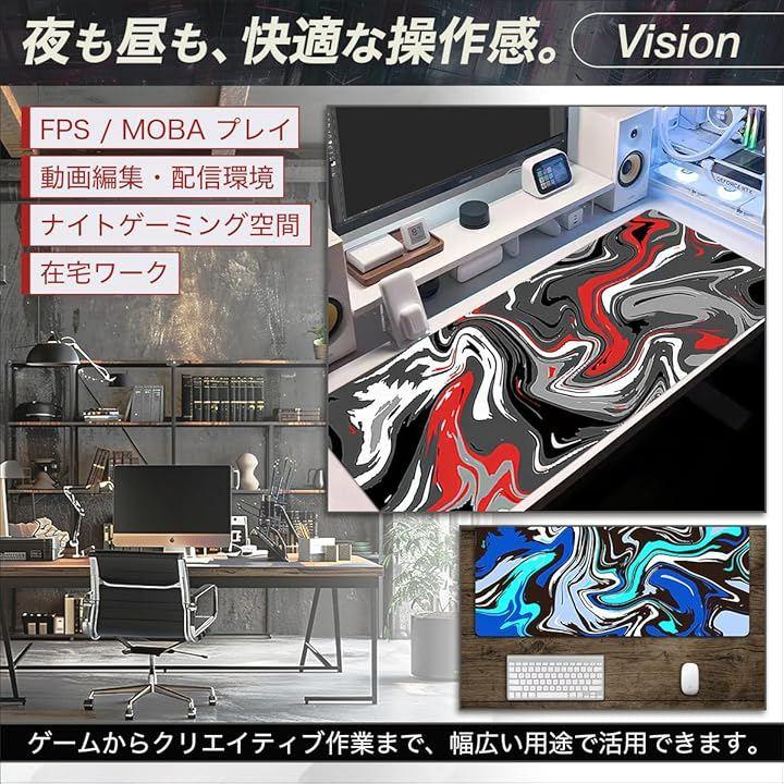 「商品詳細」 <商品名>ゲーミングマウスパッド/大型デスクマット <サイズ>400x900mm <厚さ>約3~4mm設計 <カラー>ブルー/グレー/レッド <素材>高品質クロス(表面)+滑り止めラバー(裏面) <特徴>低摩擦表面、撥水加工、滑り止めベース、ステッチ加工 <用途>ゲーミング、在宅ワーク、動画編集、オフィス作業など操作性と快適性を両立した大型マウスパッドです。