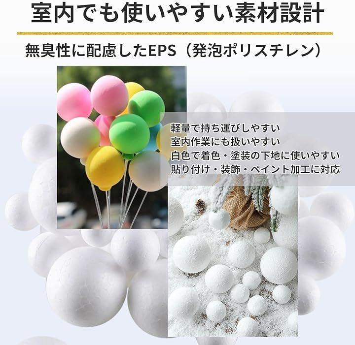 「DIY・手芸・工作に使いやすい発泡スチロールボール」発泡スチロールボール(発泡スチロール球/発泡球/ポリスチレンボール)は、軽量で加工しやすいEPS(発泡ポリスチレン)素材を使用した球体資材です。