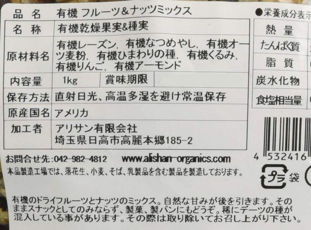 アリサン有機ナッツ&フルーツミックス1kgは、米国産の海外認定ドライフルーツ&ナッツをミックス。