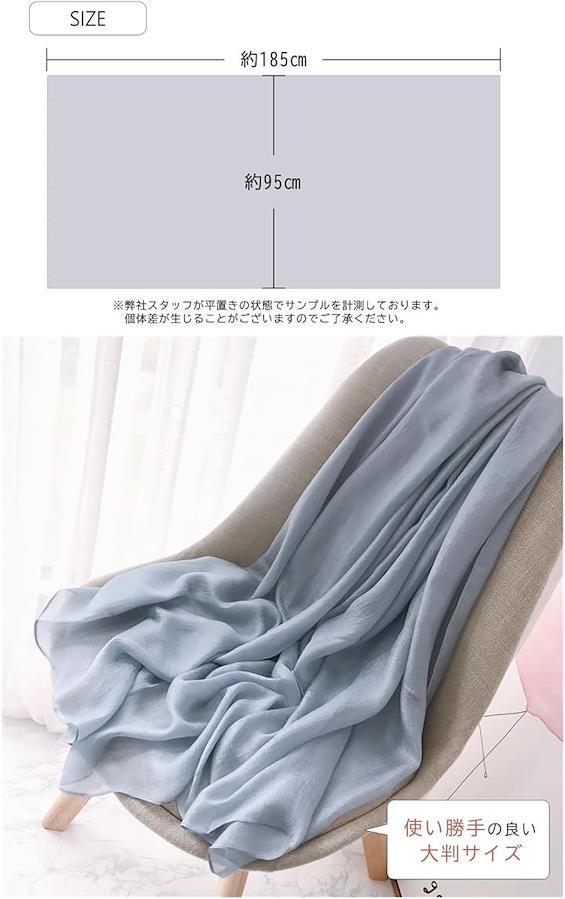 「オールシーズン対応の薄手素材」このストールは、薄手の生地で春から冬まで活躍するオールシーズン対応です。