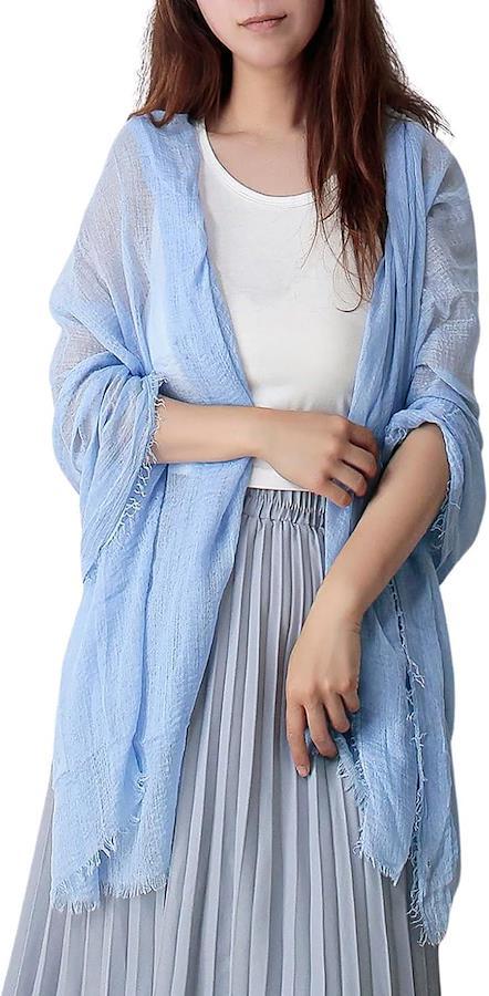 春 夏の冷房対策や UVカット=紫外線対策、秋 冬の防寒対策まで一年中活躍する大判ショールです。