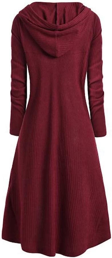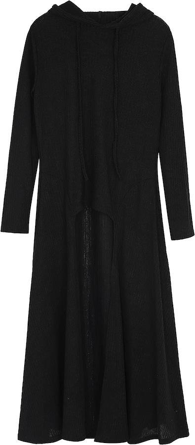 フード付きでお洒落なリブニットワンピース。