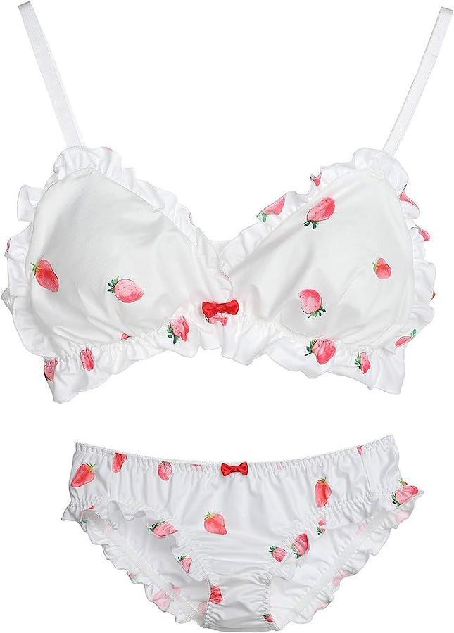 ・大きめサイズの女性にも対応の、キュートなブラ&ショーツセット。
