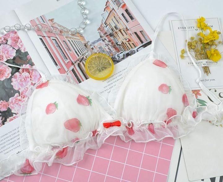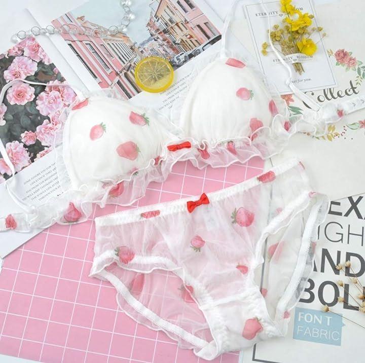 ・大きめサイズの女性にも対応の、キュートなブラ&ショーツセット。