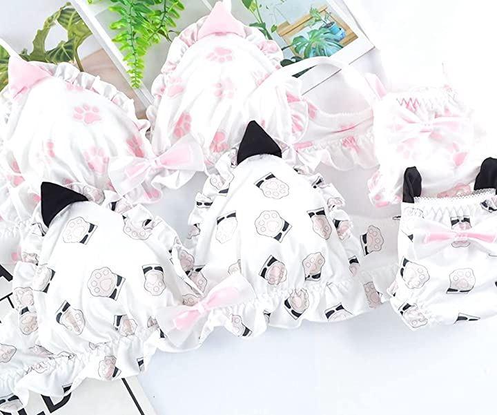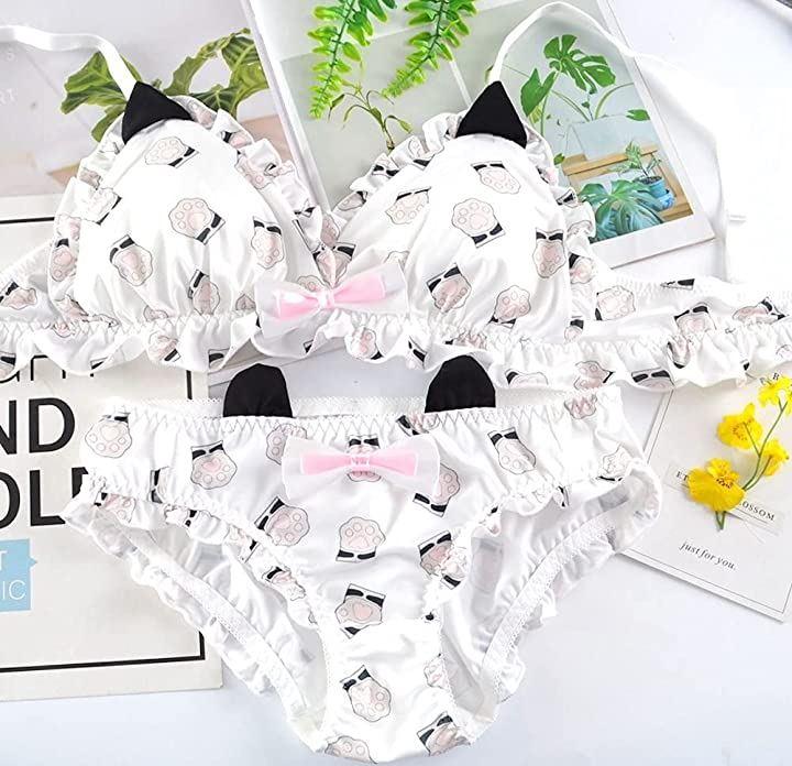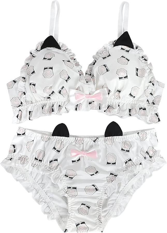 大きめサイズの女性にも対応の、キュートなブラ&ショーツセット。
