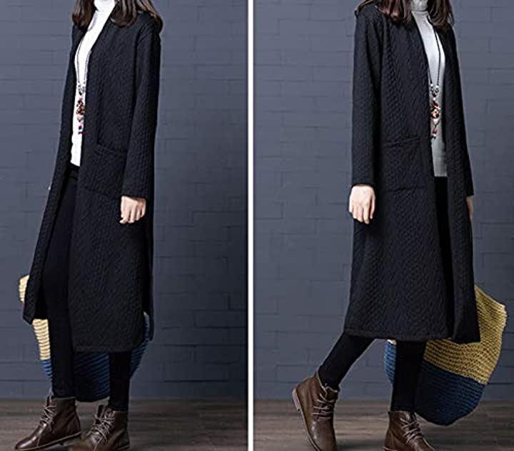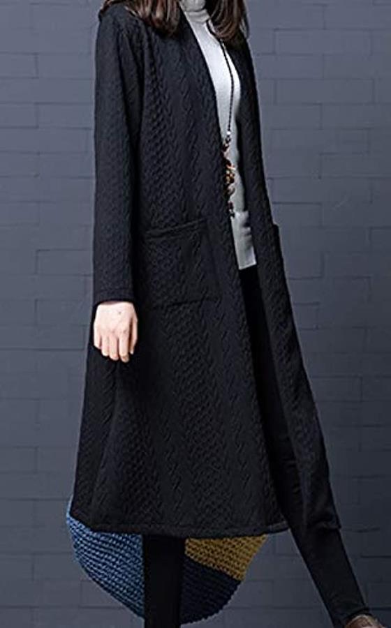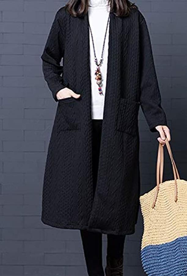 Large Spring Autumn Winter Casual Flare Coat Cardigan Women's Black