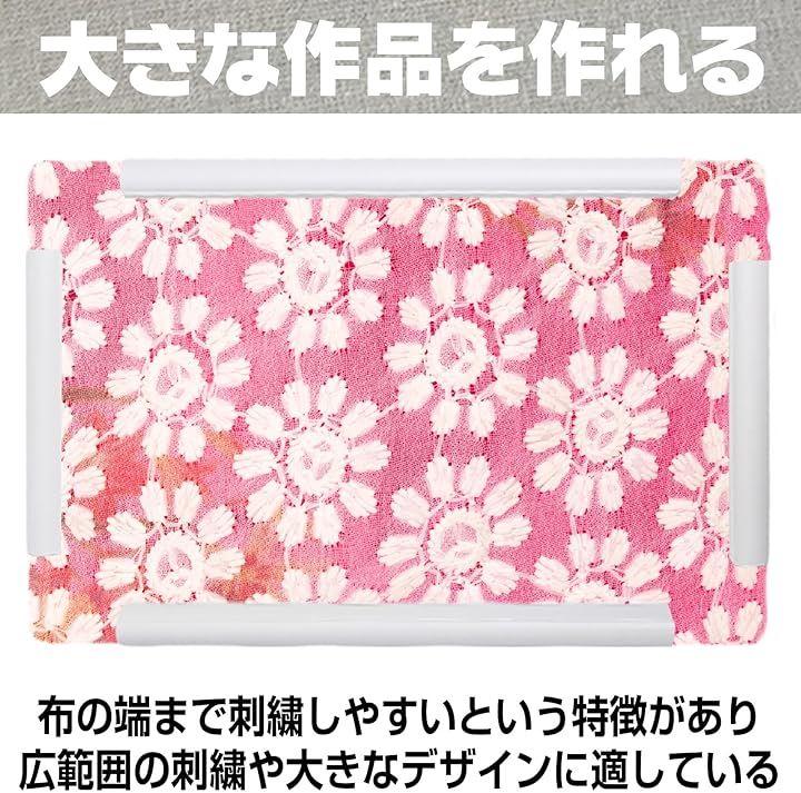 「作品をしっかりキープして美しい仕上がり」43x29cmの大きな四角い枠が布をピンと張り、均一な張力で美しい刺繍を実現します。