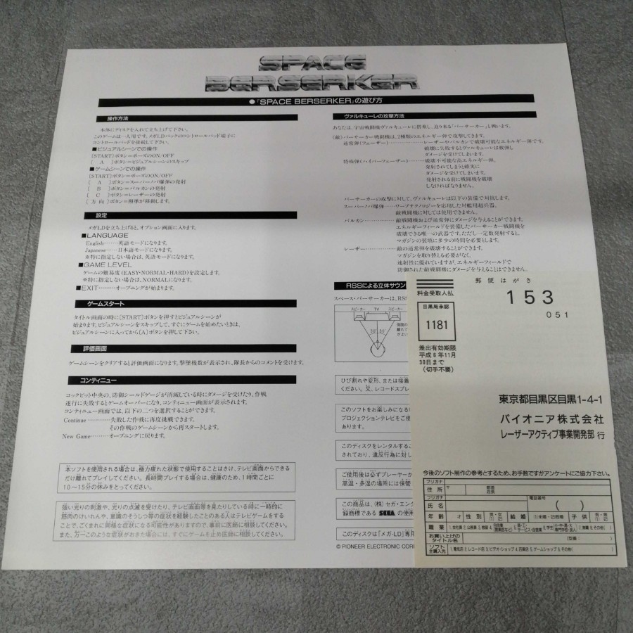 LaserActive Software SPACE BERSERKER PIONEER Retro Game Software