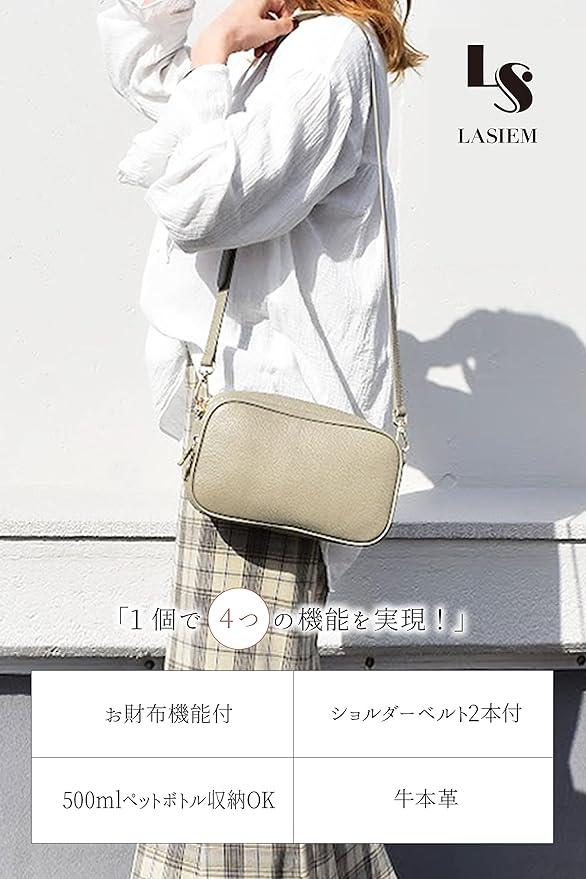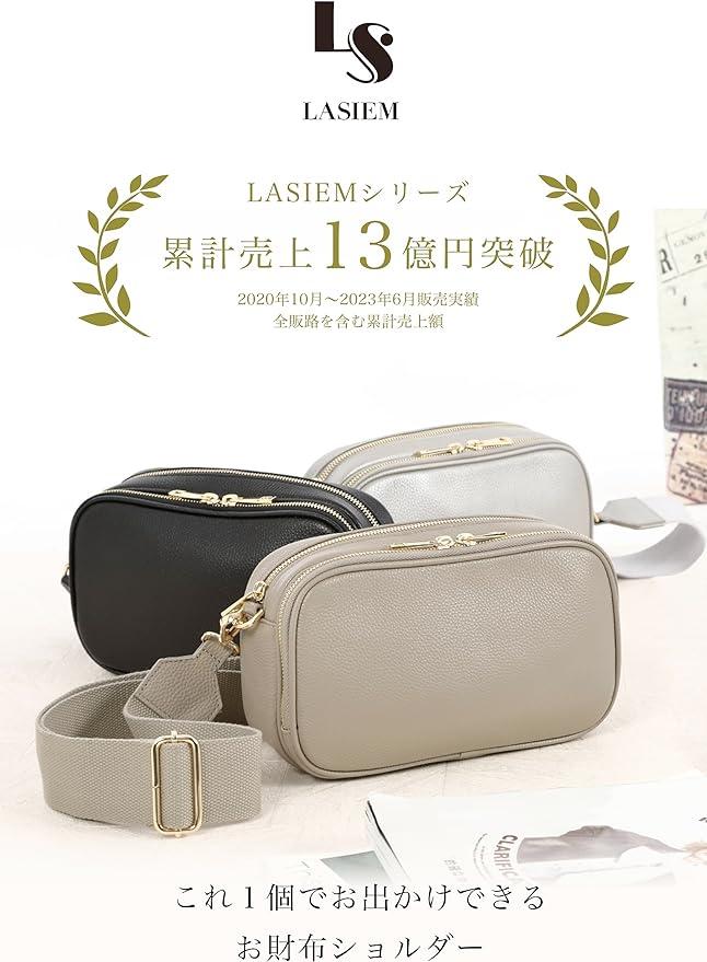 ■商品名LASIEM(ラシエム) お財布ショルダー ポシェット バッグ レディース 本革「2種類のストラップ付き」(ライトグレージュ)