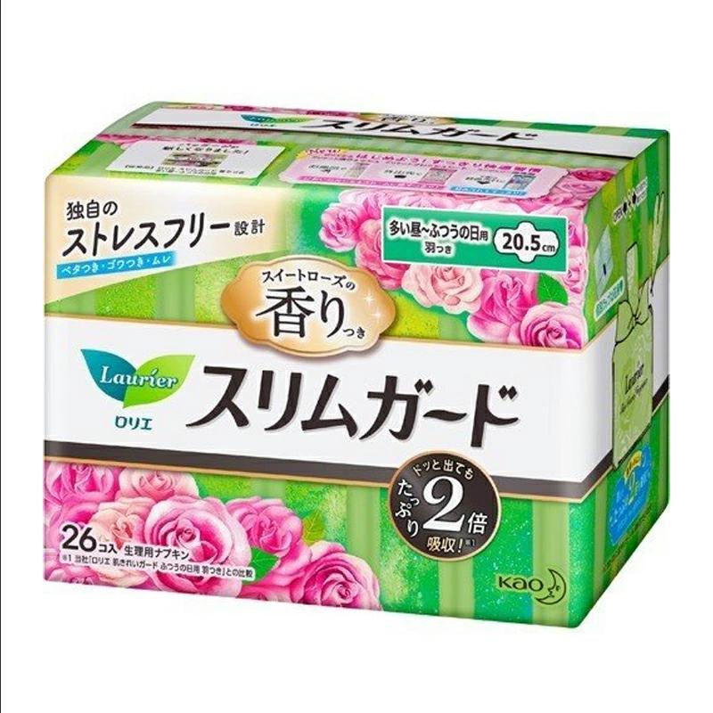 【ロリエ スリムガード スイートローズ しっかり昼用 羽つきの商品詳細】●多い日の経血も広がるスキを与えず奥まで一気に吸収!●高吸収ポリマーがぎっしり入っているから、なんとふつうのナプキン※の2倍も吸収!モレの不安がなく、表面もさらさらです。※当社「ロリエ肌キレイガード ふつうの日用 羽つき」との比較●スリット吸収体でナプキン全体がしなやかだから、スキマ感や違和感が気になりません。●とってもスリムなのに、多い日も頼れて快適なナプキンです。●フィット感up!ロリエのサニタリーショーツ「アクティブガード」とあわせてお使いいただくことをおすすめします。●スイートローズの香りつき●20.5cm・羽つき●多い昼-ふつうの日に【販売名】ロリエAW-b【使用方法】・生理時に適宜取り替えてご使用ください。【規格概要】表面材・・・ポリエチレン、ポリプロピレン、ポリエステルその他・・・香料色調・・・白【構成材料】表面材:ポリエチレン、ポリプロピレン、ポリエステル【使用上の注意】・お肌に合わない時は医師に相談してください。・使用後のナプキンは個別ラップ(かんたんラップ)に包んですててください。・トイレにすてないでください。【保管上の注意】・開封後は、ほこりや虫などが入り込まないよう、衛生的に保管してください。【原産国】日本【発売元、製造元、輸入元又は販売元】花王商品に関するお問合せ受付時間9:00~12:00/13:00~16:00(土曜・日曜・祝日除く)*製品の誤飲・誤食など緊急の場合は、受付時間外でもお電話くださいヘアケア・スキンケア用品:0120-165-692男性化粧品(サクセス):0120-165-694ニベア・8*4:0120-165-699ソフィーナ・エスト:0120-165-691キュレル:0120-165-698洗たく用洗剤・仕上げ剤・そうじ用品・食器用洗剤:0120-165-693ハミガキ・洗口液・入浴剤・温熱シート:0120-165-696紙おむつ・生理用品・サニーナ:0120-165-695飲料(ヘルシア):0120-165-697Sonae(そなえ):0120-824-450ペットケア:0120-165-696リニューアルに伴い、パッケージ・内容等予告なく変更する場合がございます。予めご了承ください。(Speed+ スピード+)花王103-8210 東京都中央区日本橋茅場町1-14-10 ※お問合せ番号は商品詳細参照