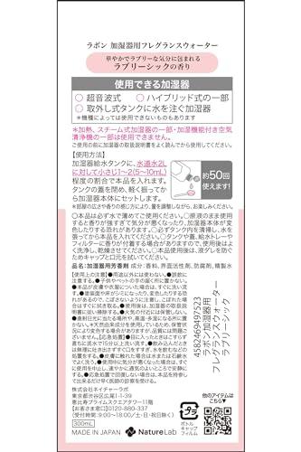 ラボン(Lavons) 加湿器用フレグランスウォーター ラブリーシックの香り 300ミリリットル (x 1)いい香り広がる加湿器用フレグランス華やかでラブリーな気分に包まれる、ラブリーシックの香り。加湿器給水タンクに、水道水2Lに対して小さじ1~2(5~10mL)程度の割合で本品を入れます。タンクの蓋を閉め、軽く振ってから加湿器本体にセットします。使用できる加湿器:超音波式/ハイブリット式の一部/取外し式タンクに水道水を注ぐ加湿器内容量:300ml原産国:日本商品紹介加湿器用のフレグランスウォーター。給水タンクに水道水と一緒に入れるだけ。ふわっと広がる心地よい香りを楽しめます。華やかでラブリーな気分に包まれる、ラブリーシックの香り。●使用できる加湿器:超音波式/ハイブリット式の一部/取外し式タンクに水道水を注ぐ加湿器※機種によっては使用できないものもあります。※加熱、スチーム式加湿器の一部・加湿機能付き空気清浄機の一部は使用できません。ご使用の前に加湿器の取扱説明書をよく読んでから使用してください。使用上の注意【使用上の注意】●用途以外には使