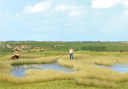 A4サイズの草類と池を表現するジオラマ素材です。池、沼地の水面と草のイメージ。水面の細波が表現されたシートに丈の異なる草が植え込まれています。大きさ:約 297 x 210 mm(A4サイズ)入り数:1枚