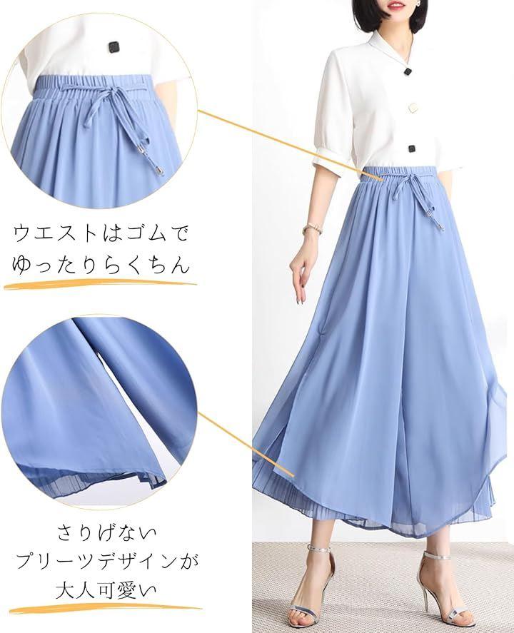 「使用シーン」シフォンスカートのようなスカート風パンツは、アジアンテイストや異国情緒のあるスタイリングにもぴったりなスカーチョ。