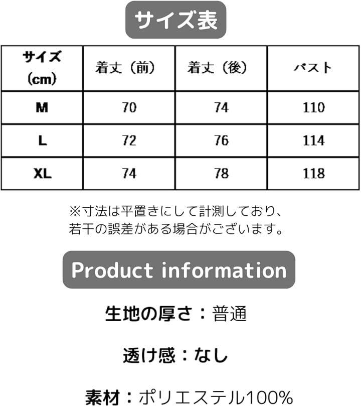 「サイズ」 「M」着丈(前)70cm/着丈(後)74cm/バスト110cm 「L」着丈(前)72cm/着丈(後)76cm/バスト114cm 「XL」着丈(前)74cm/着丈(後)78cm/バスト118cm *寸法は平置きにして計測しており、若干の誤差がある場合がございます。