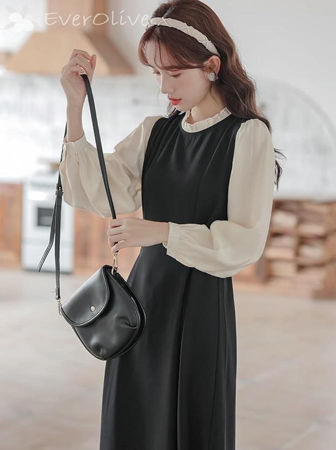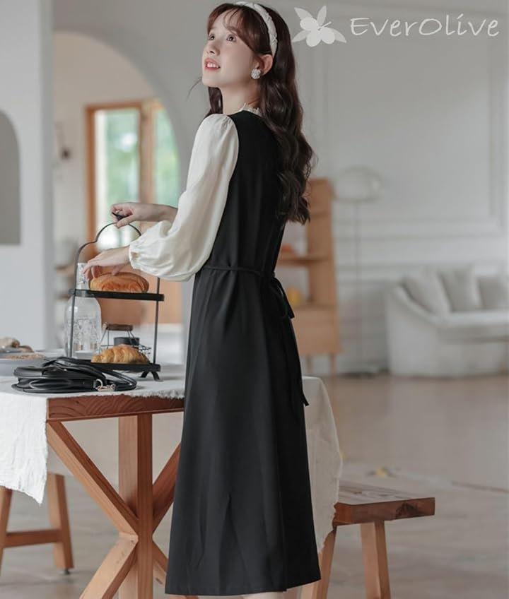 「アクセサリーの足し算でお呼ばれにも」 首元のフリルとボリュームのあるぽわん袖が女性らしく、クラシカルな印象を与えてくれるこちらのワンピース。