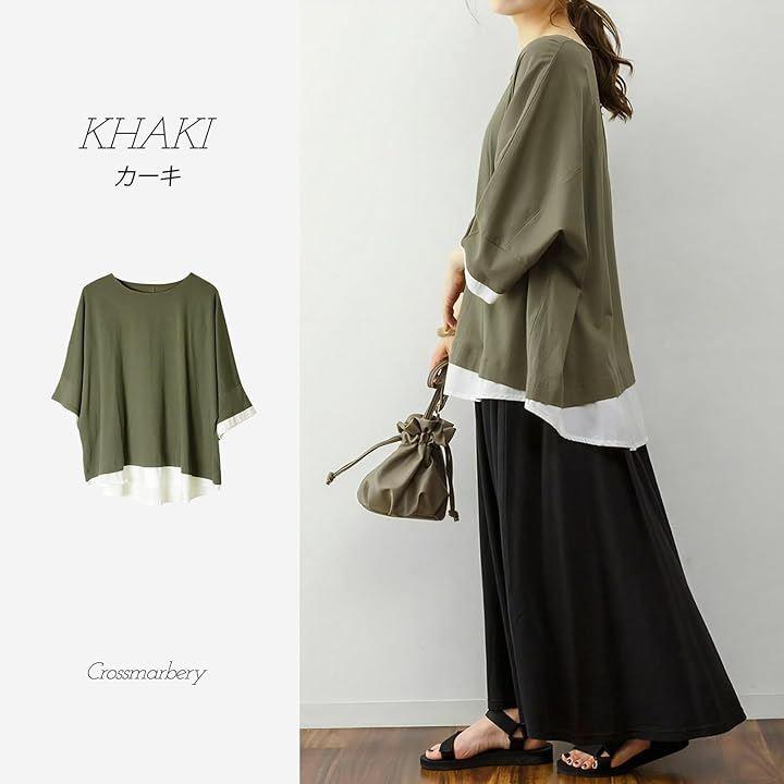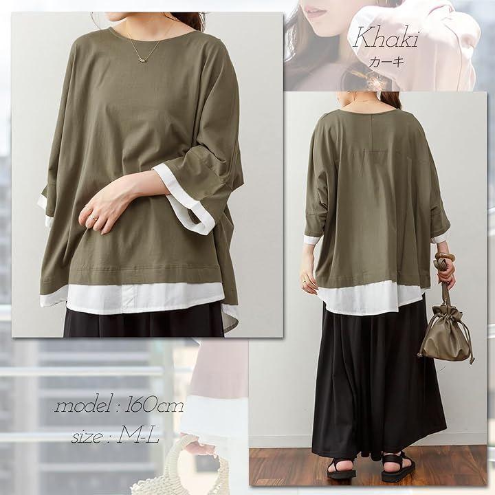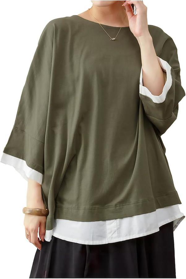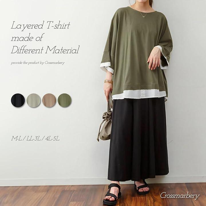*ゆるっと異素材レイヤードTシャツ* 着まわし大活躍。コットン素材のレイヤードTシャツ。