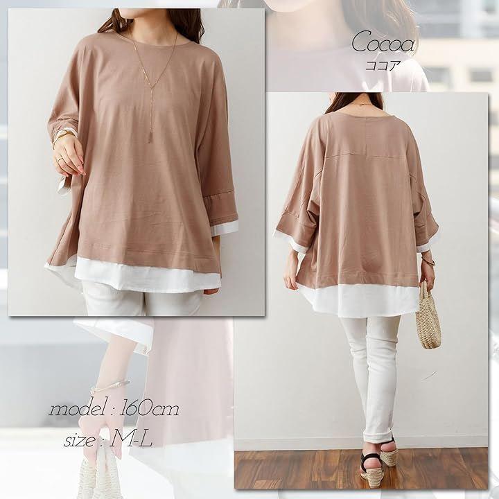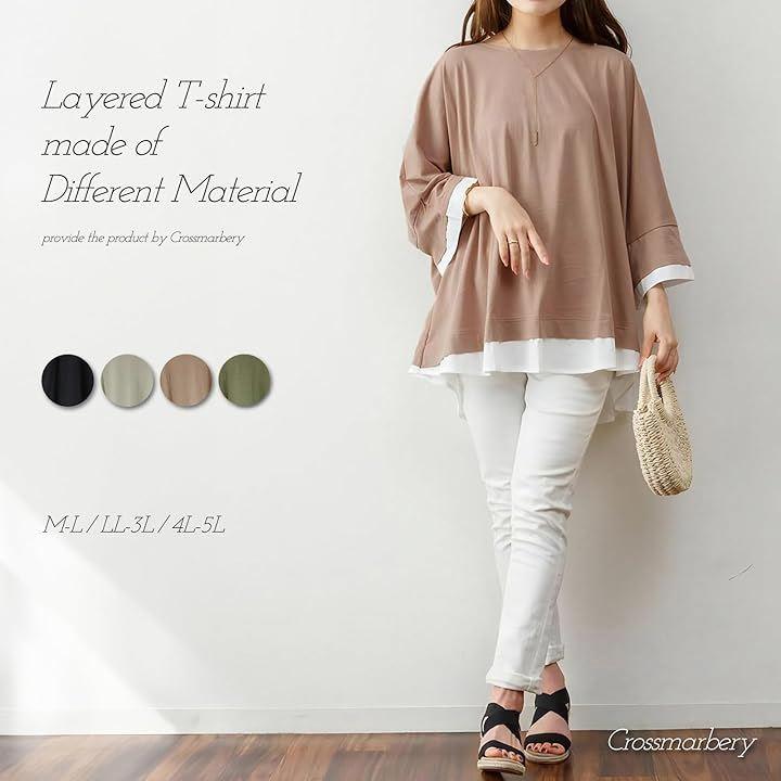 *ゆるっと異素材レイヤードTシャツ* 着まわし大活躍。コットン素材のレイヤードTシャツ。