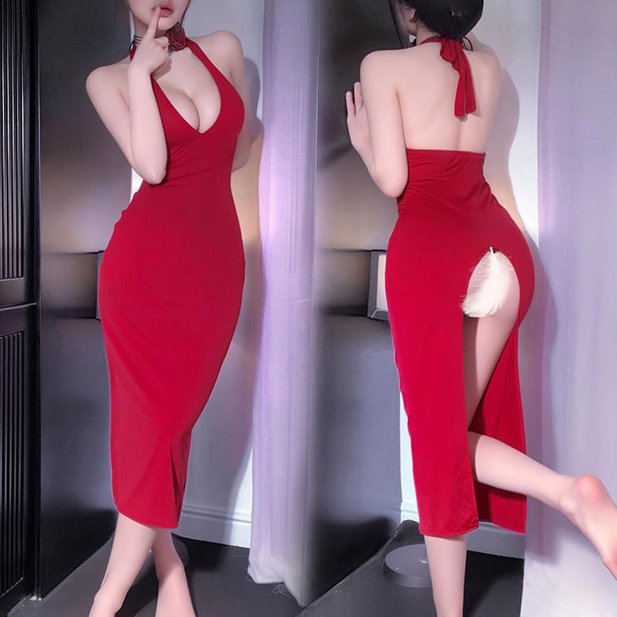 [LDDYCOS] Sexy, Erotic, Extreme Cosplay Dress, Perverted, Seductive, Wine Red, Deep V-Neck, Slit, Sheer, Secretary, Office Lady, Teacher