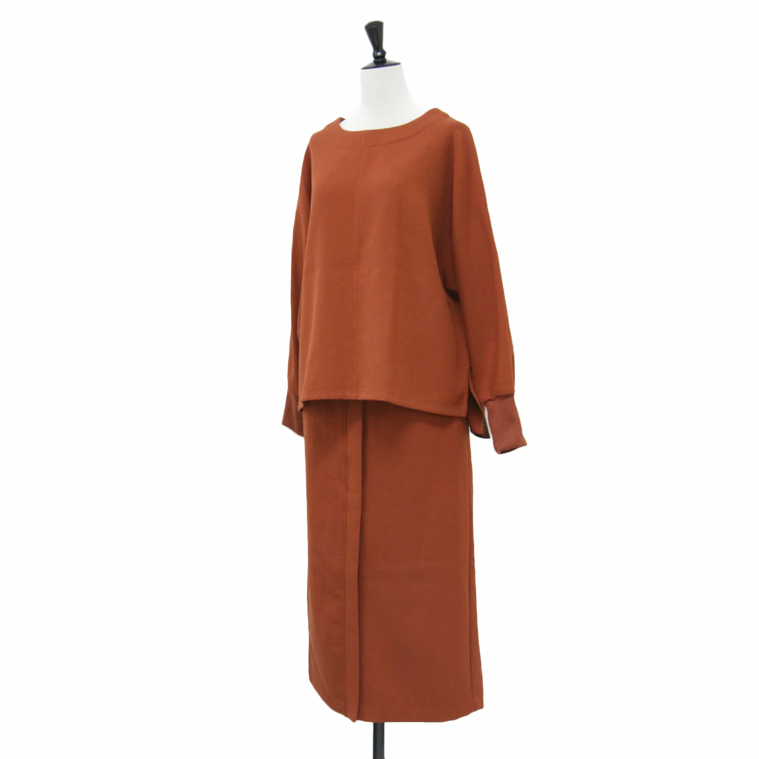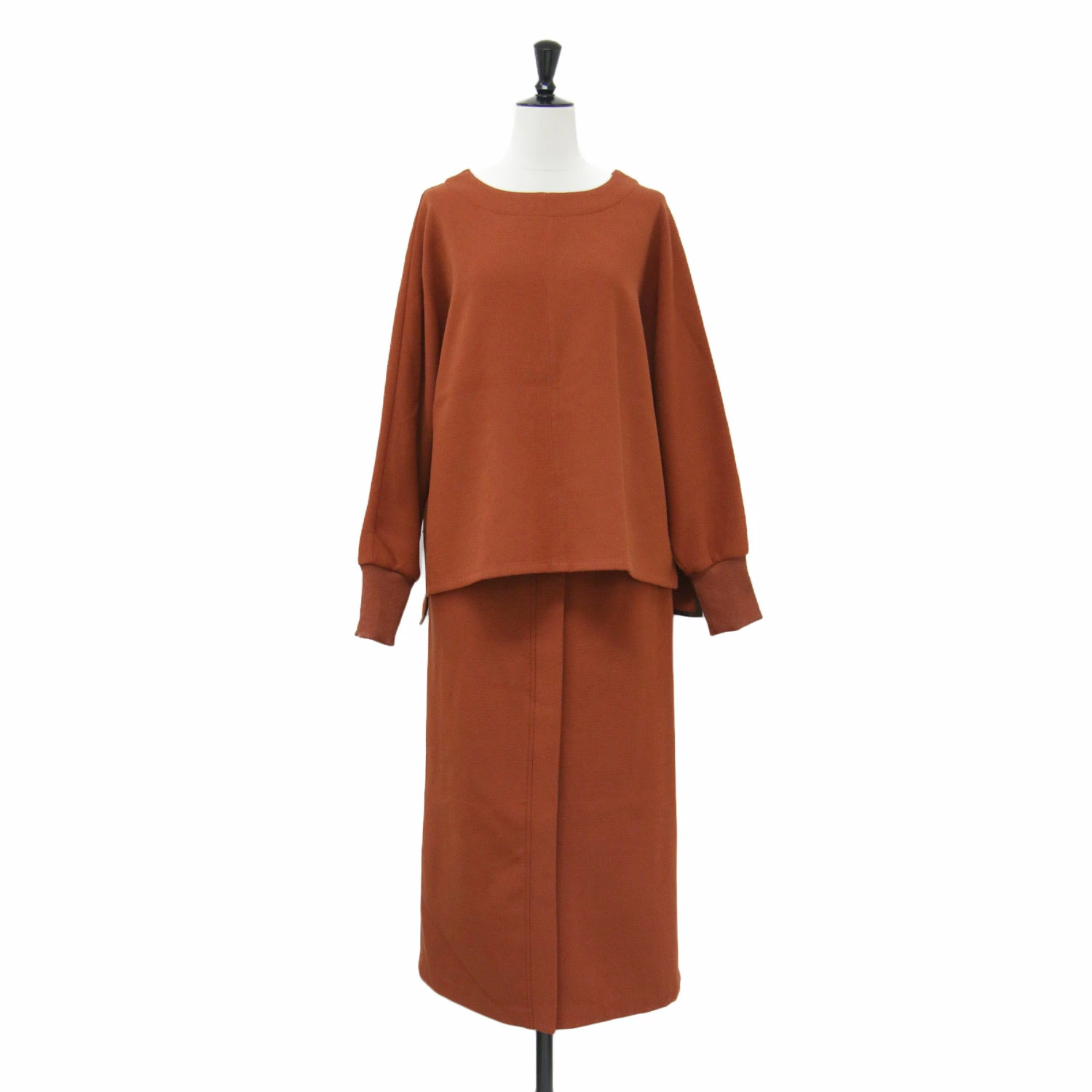 le.coeur blanc Orange, Size: 38 (M) | Fall/Winter 2024 Dolman Pullover and Skirt Set / Blouse | Wide Crew Neck, Slit, Elastic Waist, Stretch, Tuck [Women's] [Pre-owned] [K4707]