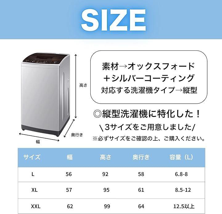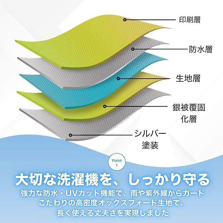 シルバーコーティングが施された洗濯機カバーは、直射日光による劣化を防ぎ、屋外でも安心して使用可能。