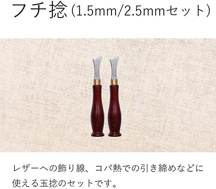 レザーへの飾り線、縫い代、コパ熱での引き締めなど多才に役立ってくれる玉捻のセットです。