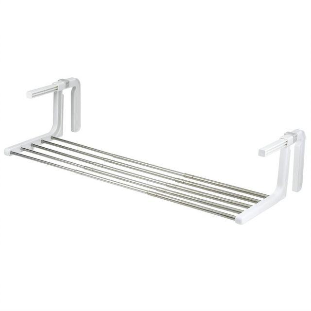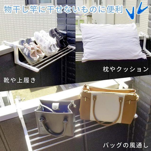 ●工具不要のかんたん取り付け!ベランダ内側の空きスペースに干すことができます!●幅20cmまでのベランダ手すりに取り付けることができます。●バスタオルだけでなく、バスマットやキッチンマット、シーツなども干すことができます。●十分なスペースがあるので、シューズやまくらなどの置き干しもできます。●週末にまとめて洗濯した際に、物干し竿だけでは足りない時にスペースを活用してたっぷりほすことができます。●スペースに合わせて干し幅が変えられます(最小約27cm~最大75cm)●大判のバスタオルが5枚・バスタオルなら10枚も干すことができます。●簡単取り付け設置で、ネジや釘を使用しません。●使わない時は簡単に取り外しできます。●サビに強いステンレス製で、耐久性もあります。●キッチンマットやバスマット、ジーンズなど乾きにくい物も広げて掛け干しすれば乾きやすくなります。●耐荷重5kg(1本あたり1kg)。●【使用上の注意】●お子様をそばに近づけないでください。のったり、ぶら下がったりすると大変危険です。●使用しない際は、ベランダから片づける等のご配慮をお願いします。●設置場所の強度をよく確認してください。●マンションの上階層など風が常に強い場所での使用はお避け下さい。●万一の落下を考慮し、下に人や物が通る場所でのご使用はお避けください。●取り付け・取り外しの際は部品を落下させないように充分ご注意ください。●必ずベランダの内側に設置してください●強風の時は取りはずし、使用しないてください。●使用によりベランダ手すりにきずがつくおそれがあります。●炎天下では本体が熱くなることがありますので取扱いには十分ご注意ください。●洗濯物はバランスよく干してください。●耐荷重以内でご使用ください。●仕様前に各部を点検し、万一破損等の異常がある場合には使用しないでください。●野外で使用する際、恐怖の時は室内に取り込んでください。●紫外線によって劣化が促進されます。使用後は、室内または日光の当たらない場所に保管してください。●洗濯物を干した状態での製品移動はお避け下さい。思わぬ事故・ケガのおそれがあります。●伸縮時には、指などを挟まないよう充分ご注意ください。●竿からの付け外しの際は両方のフックをもって移動してください。●炎天下では本体が熱くなることがありますので、取扱いにはご注意ください。●本来の用途以外には使用しないでください。植木鉢等は置かないでください。●廃棄時は各自治体の定める方法に従って処理してください。●商品の外観仕様等は予告なく変更することがあります。