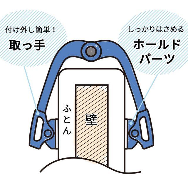 ロングサイズなので、厚手の布団も奥までしっかりと挟めます。コンクリート壁など、手すりの部分が厚みのあるベランダにも対応します。布団をしっかり挟めるホールドパーツ付きです。アームが握りやすく、力が入りやすい取っ手が付いています。