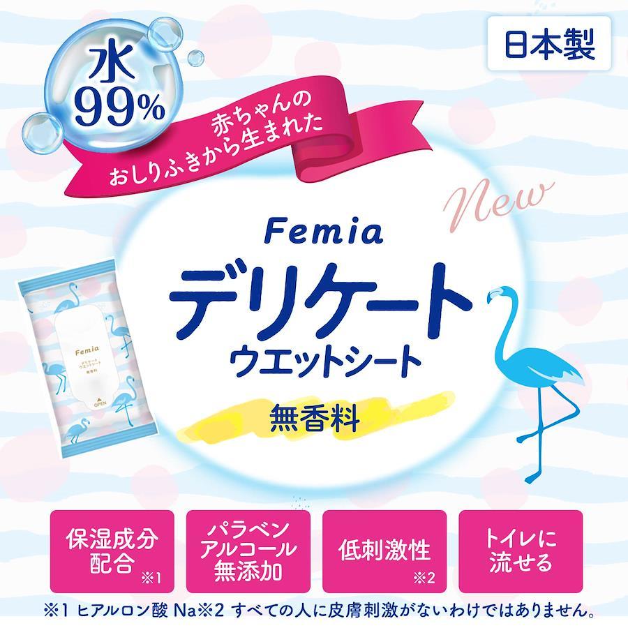●おりものが気になる・ムレやニオイをリセットしたい・スッキリふきとりたい・こすりたくない方にお勧めです。 女性のためのデリーケートゾーン用ウェットシート 「おりものが気になる」「ムレやニオイをリセットしたい」「スッキリふきとりたい」「こすりたくない」、そんな時におすすめです。 使用後はトイレに流せます。携帯用サイズなので外出時に便利です。 保湿成分ヒアルロン酸Na配合。パッチテスト・スティンギングテスト済みです。 赤ちゃんのおしりふきから生まれた優しい成分。日本製です。