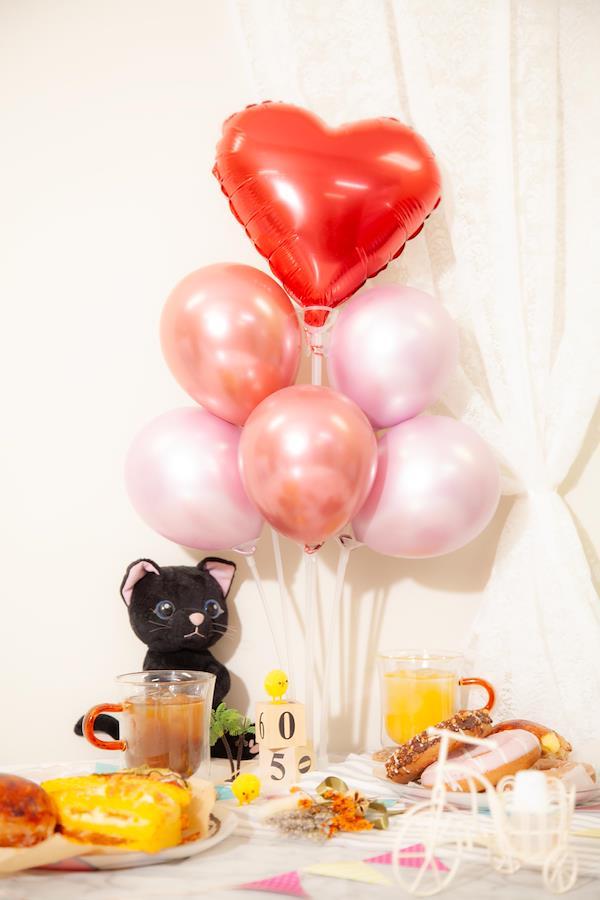 3営業日以内に発送≪新品未開封品≫誕生日会や結婚式、推し活(推し不在、本人不在の誕生日会)などのイベント・パーティーに大活躍★卓上式のミニバルーンスタンドです。【製作時間】約10分【完成サイズ】約60㎝×30㎝×30㎝【セット内容】アルミハートバルーン(赤)×1個/ゴムバルーン(赤/ピンク)×8個(各色3個+各色予備1個 )/バルーンスタンド×1個(粘着シール付)/スティック 30cm×2個・スティック20cm×6個/スティック用ジョイント×1個/アルミバルーン用吹込みストロー×1個/バルーン留め具×7個(アルミバルーン用×1・ゴムバルーン用×6)※製作にはバルーンポンプ(別売)が必要です。
