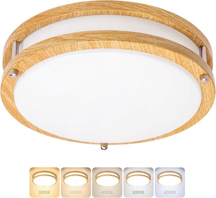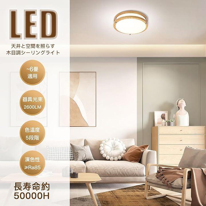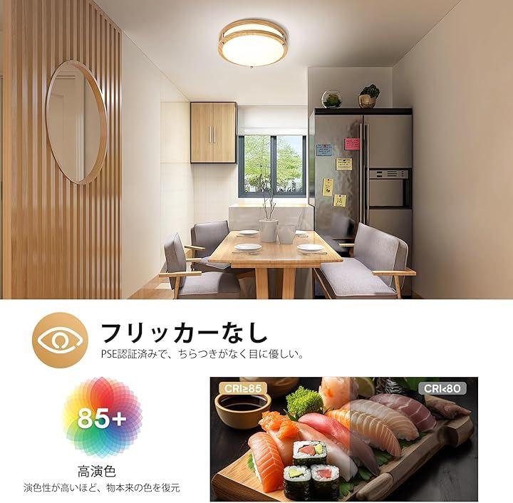 「商品仕様」 ◉品名: LED木目調シーリングライト ◉商品サイズ:直径約25.4cmx高さ約8cm ◉定格電圧:AC100V(50/60Hz) 定格消費電力:24W ◉器具光束:2600lm ◉色温度:3000K/3500K/4000K/5000K/6000K ◉演色性:Ra85 ◉設計寿命:50000時間