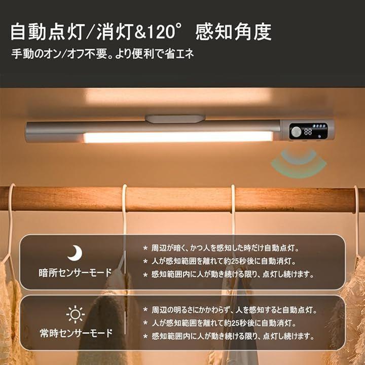 「120°広範囲人感センサー」人感センサーライト室内設置に最適な120°超広角検知機能搭載。前方3m・角度30°調整可能で、廊下やクローゼットの動きを確実に捉えます。