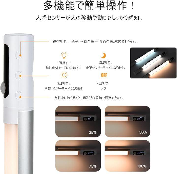 昼光色/電球色/自然光の3色温度と4段階明るさを自由調整。
