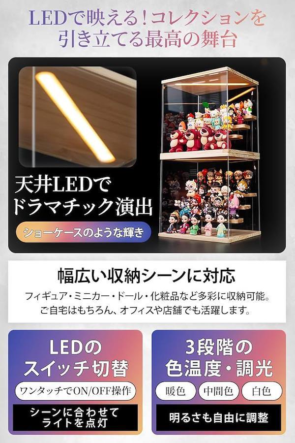 LEDはスイッチでON/OFFの切り替えが可能で、3段階の色温度+調光タイプなので、お好みの設定でフィギュアやミニカーの質感やカラーをリアルに再現し、お部屋の明かりを落とせば、まるでショーケースのような特別な雰囲気を演出できます。