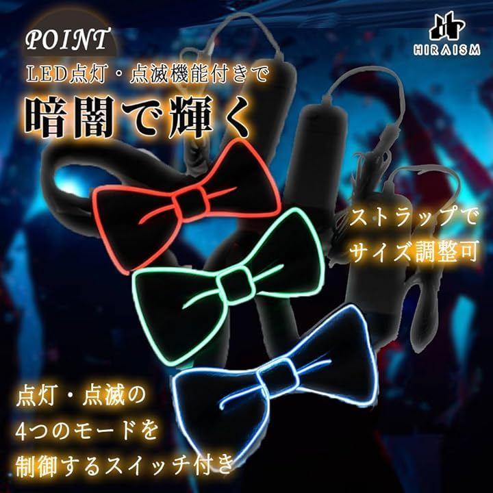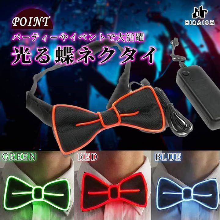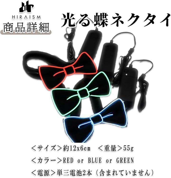 「商品内容」蝶ネクタイ <サイズ>幅約12cmx長さ約6cm <重量>55g <カラー>RED or BLUE or GREEN <電源>単三電池2本(含まれていません)