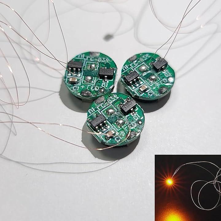 商品仕様 : サイズ: 直径 約1cm、厚み 約0.5cm、リード線 18cm カラー: ホワイト、レッド、オレンジ、イエロー、ブルー、グリーンの6色 セット内容: 同色のLEDライト 3個セット (+予備1個) スイッチ方式: マグネット磁気スイッチ(磁石を近づけることでON/OFF切り替え) 使用電池: ボタン電池 CR927(別売り)