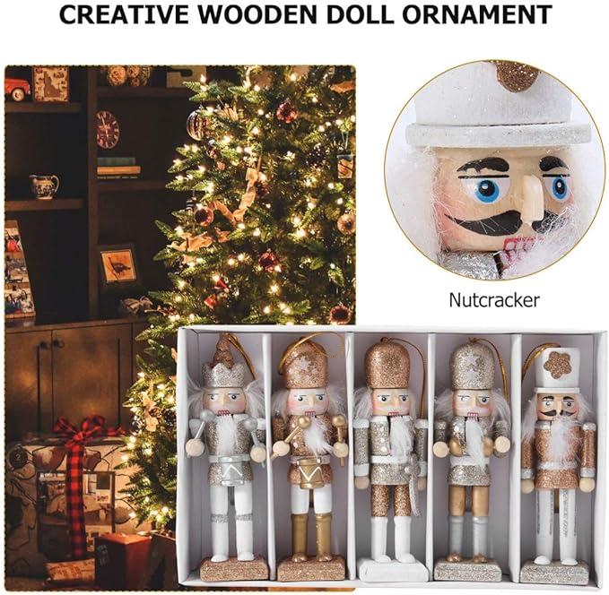 ■商品名ledmomo クリスマス 置物 小物 木製 人形 くるみ割り人形 ハンガリー騎兵 オーナメント クリスマスツリー飾り デコレーション 兵士人形 手塗り プレゼント 5本セット
