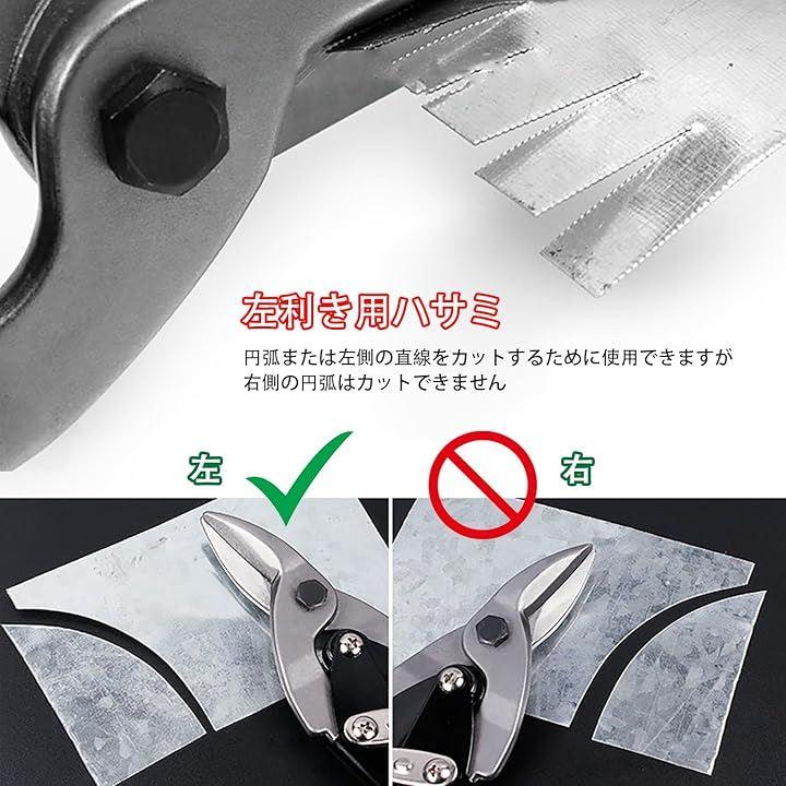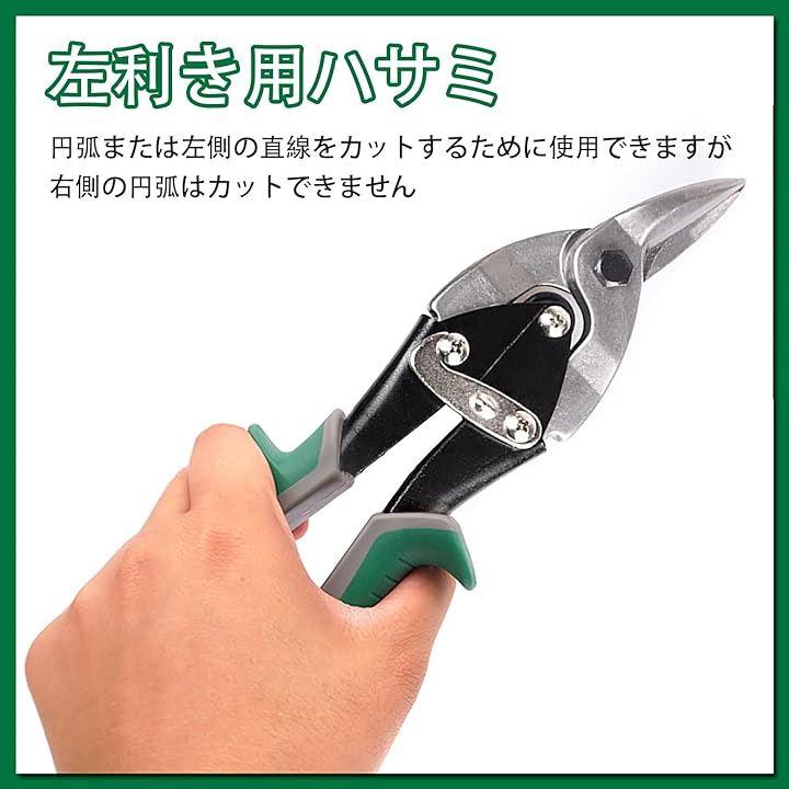 左利き用板金バサミ,円弧または左側の直線をカットするために使用できますが、右側の円弧はカットできません。